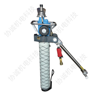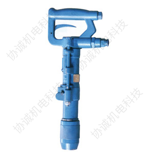 工程上常見的分類是按鑿巖機的支撐方式來分類的1、氣腿式鑿巖機這類鑿巖機的重量較輕,一般在25kg以下,工作時用手扶著操作。氣腿式鑿巖機可以打各種小直徑和較淺的炮孔。一般只打向下的孔和近于水平的孔。氣腿式鑿巖機由于它靠人力操作,勞動強度大,沖擊能和扭矩較小,鑿巖速度慢,現在地下礦山很少用它。屬于此類的鑿巖機有Y3、Y26等型號。