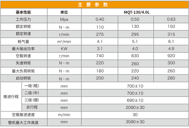 MQT- 130/4.0L型氣動錨桿鉆機廣泛適用于巖石硬度≤f8的巷道,特別適應煤巷的錨桿支護作業,既可鉆頂板錨桿孔,又可鉆錨索孔,還可攪拌和安裝樹脂藥卷類錨桿、錨索,無需其他設備,既可實現錨桿螺母一次性安裝擰緊,達到初錨預緊力要求。